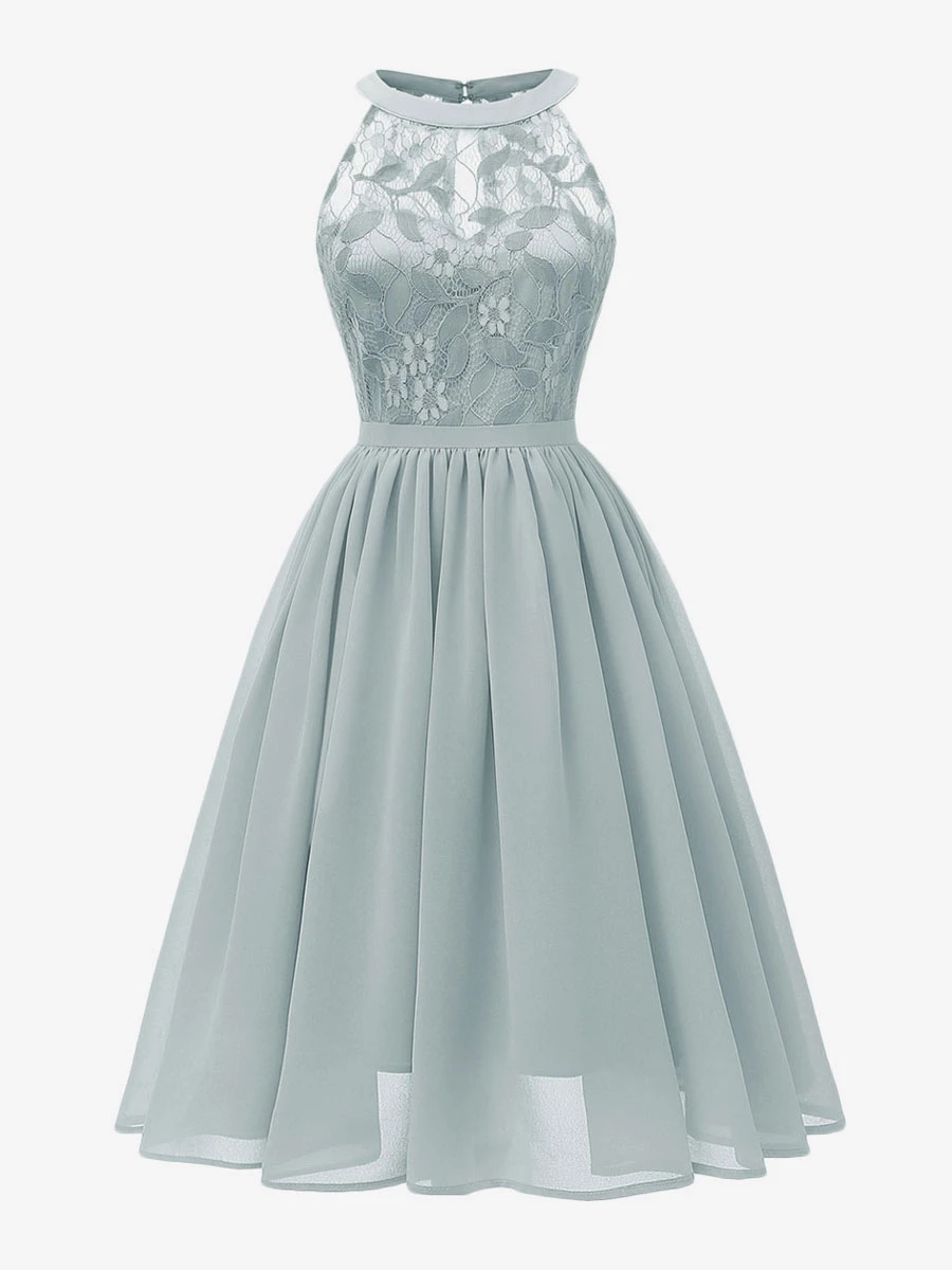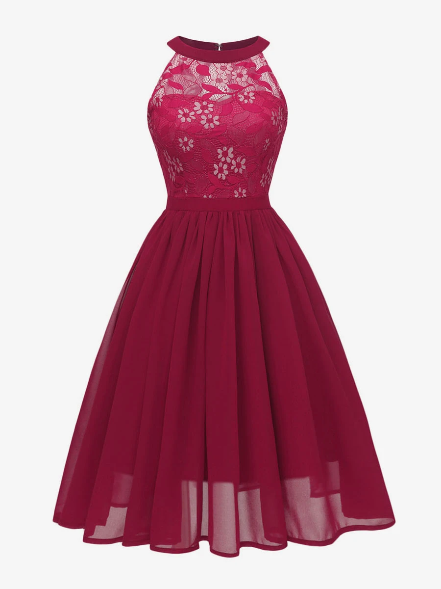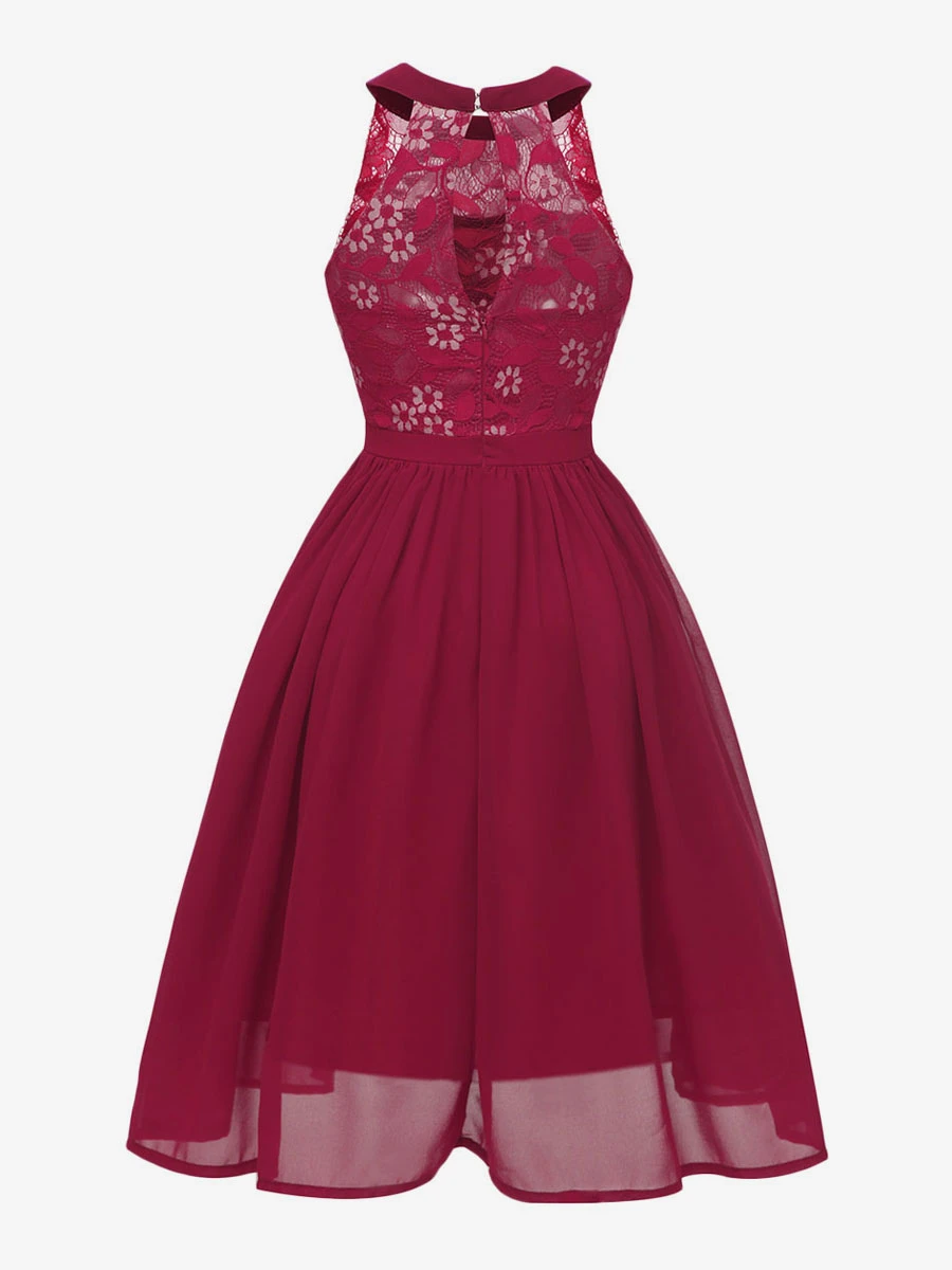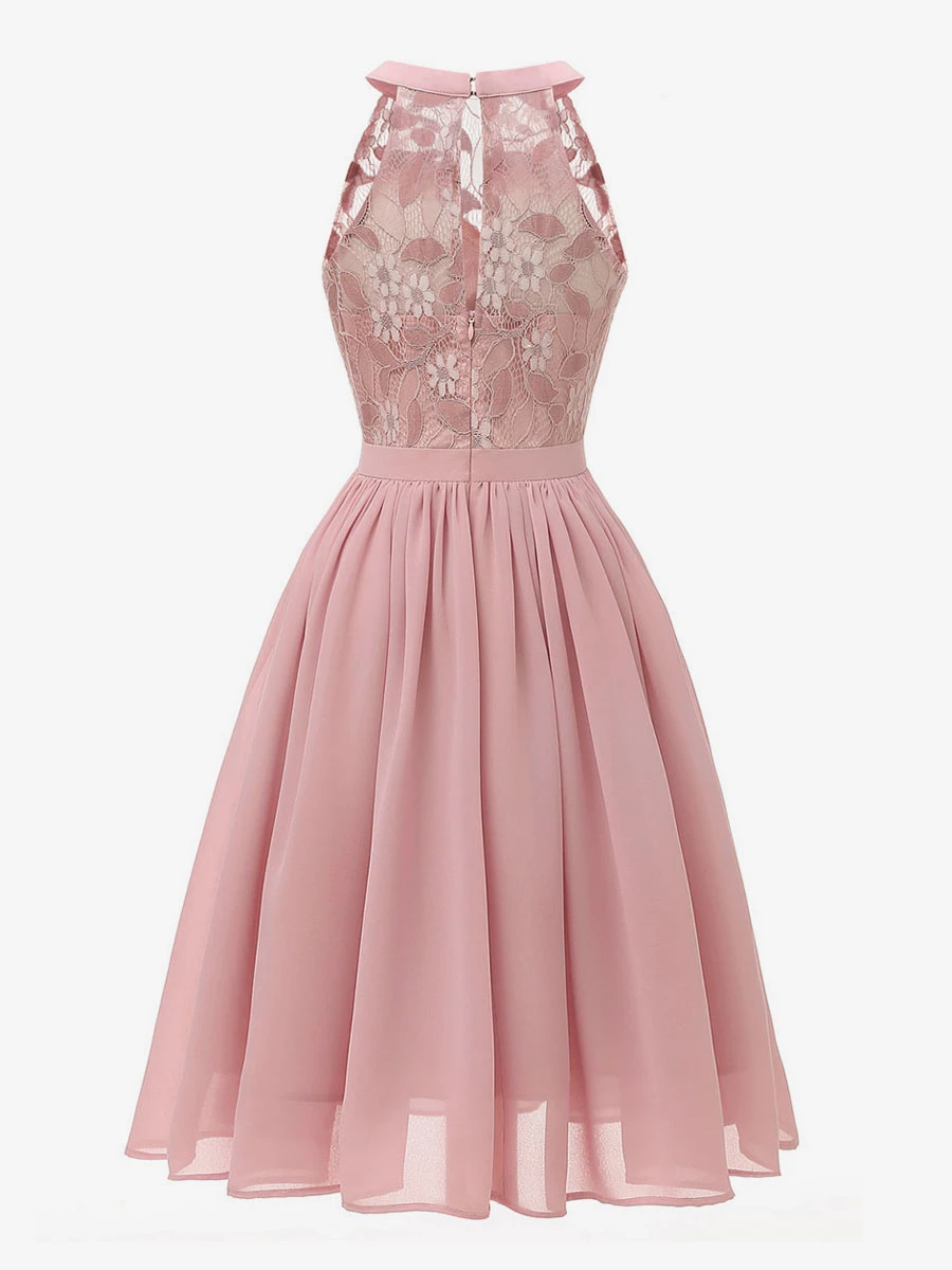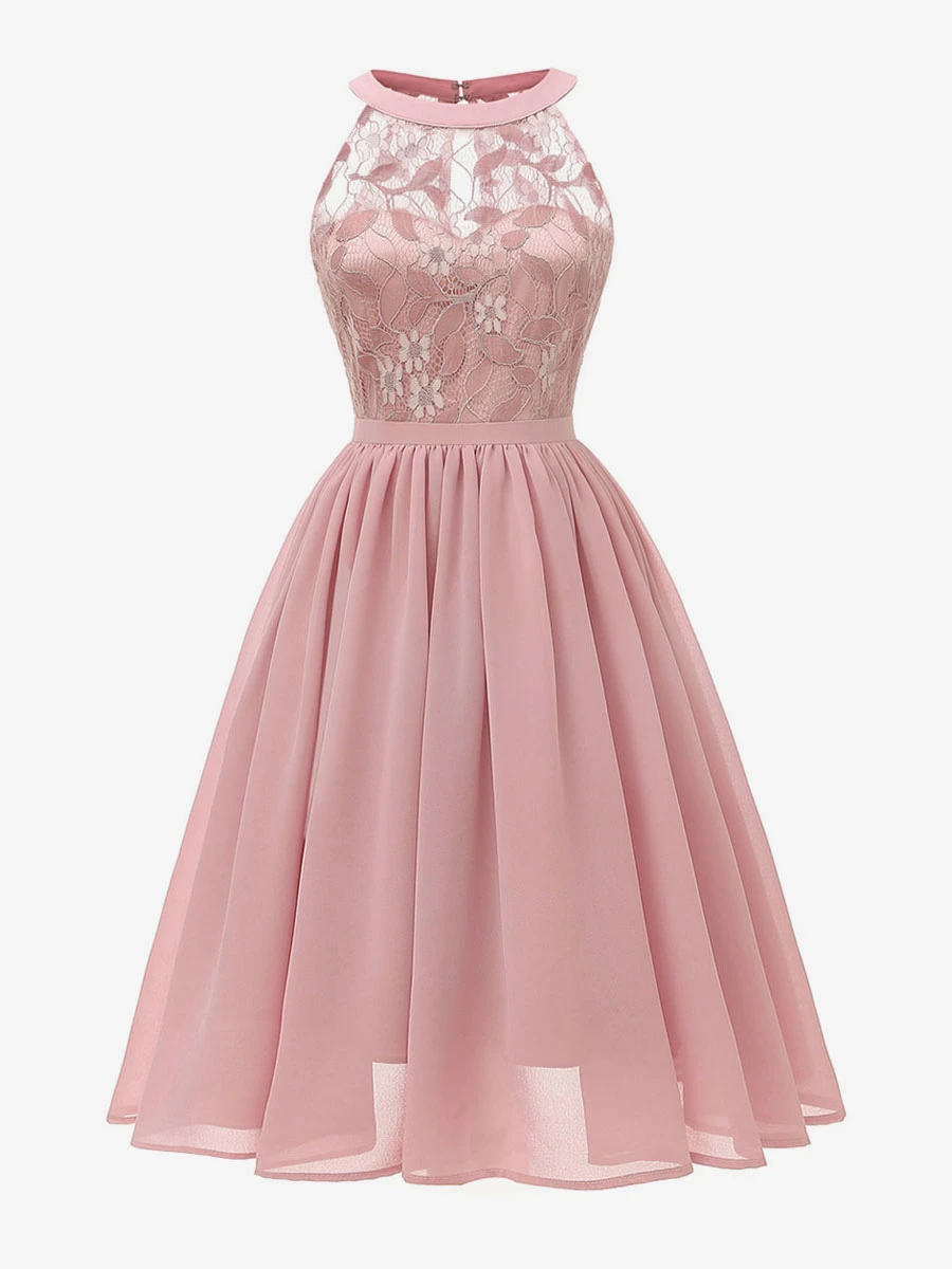 1950s Audrey Hepburn Style Retro Dress Pink Sleeveless Jewel Neck Lace Swing Dress