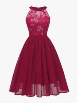 Be the first to review “1950s Audrey Hepburn Style Retro Dress Pink Sleeveless Jewel Neck Lace Swing Dress” Cancel reply