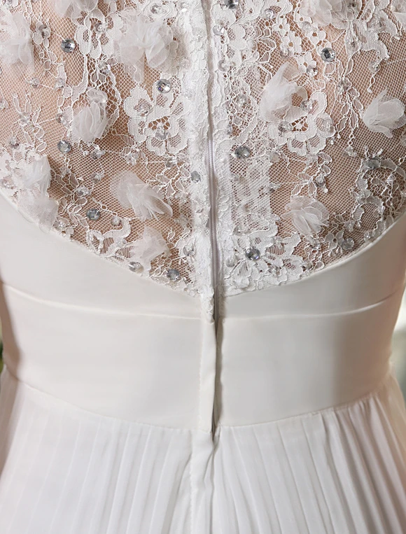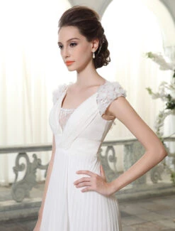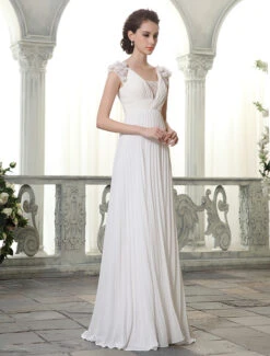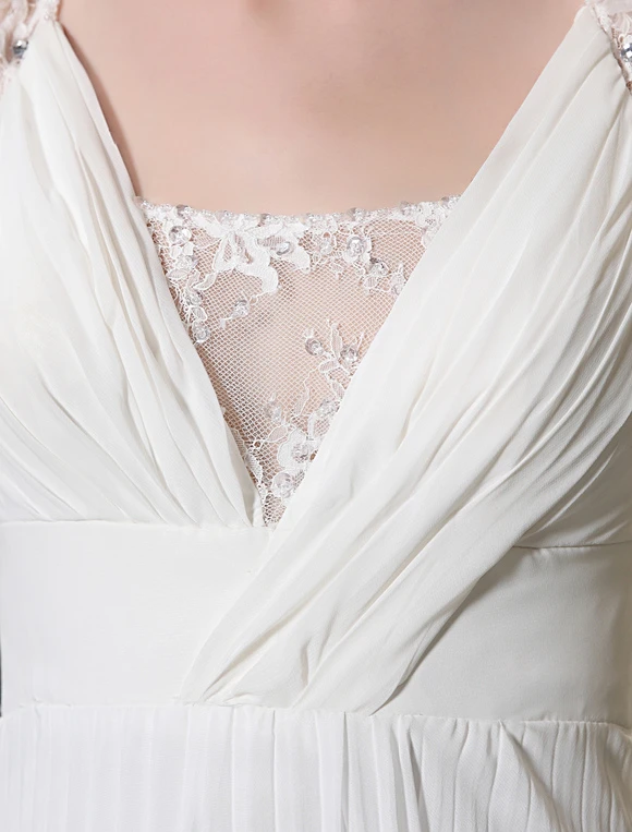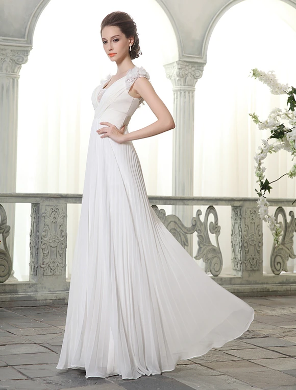 Beach Wedding Dress V Neckline Chiffon Beading Pleated Floor Length Bridal Gown Free Customization