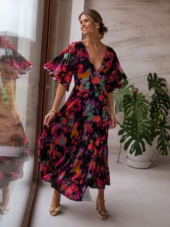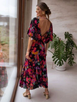 Be the first to review “Birthday Summer Dress Black V-Neck Ruffles Printed Beach Dress” Cancel reply
