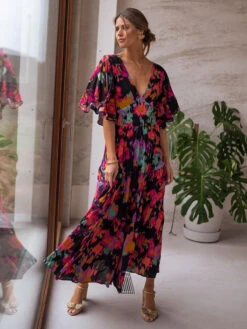 Be the first to review “Birthday Summer Dress Black V-Neck Ruffles Printed Beach Dress” Cancel reply
