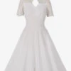 Be the first to review “Black 1950s Audrey Hepburn Style Off The Shoulder Flower Embroidered Tulle Vintage Dress” Cancel reply