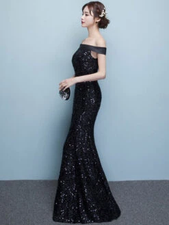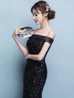 Be the first to review “Black Evening Dress Lace Sequin Bateau Mermaid Formal Dress Off The Shoulder Floor Length Occasion Dress Wedding Guest Dress” Cancel reply