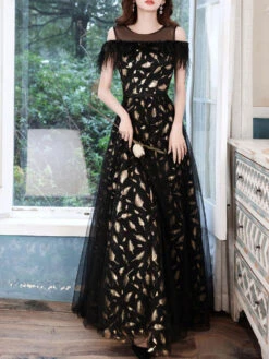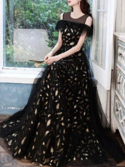 Be the first to review “Black Prom Dress 2023 A-Line Jewel Neck Lace Floor-Length Feathers Pageant Dresses Wedding Guest Dresses” Cancel reply
