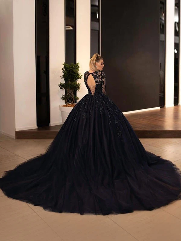 Black Wedding Dresses A-Line Long Sleeves Lace With Train Bridal Dress Free Customization