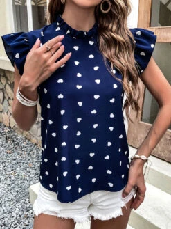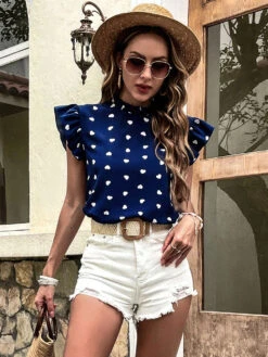 Be the first to review “Blouse For Women Dark Navy Chiffon Jewel Neck Casual Buttons Short Sleeves Tops” Cancel reply