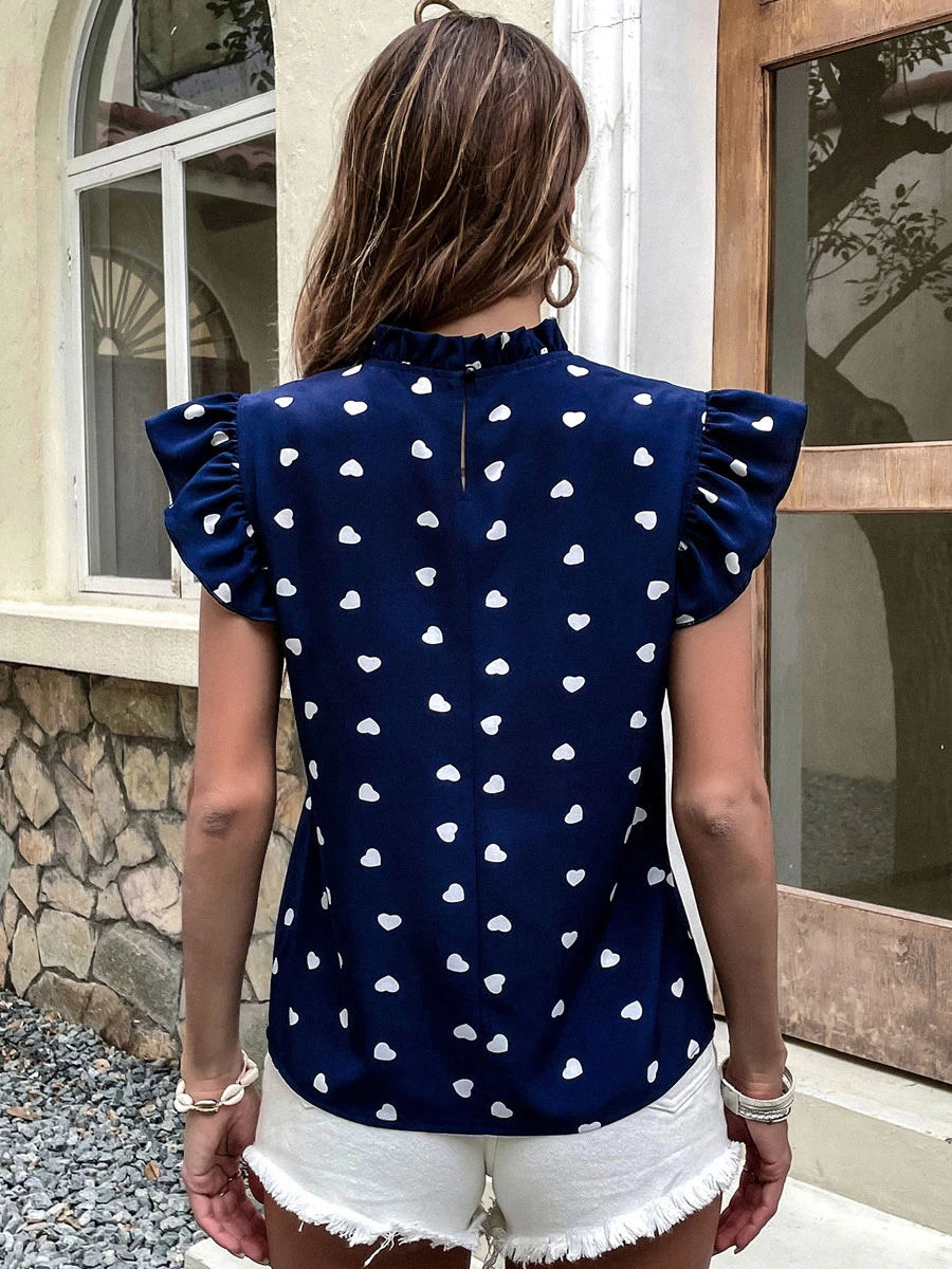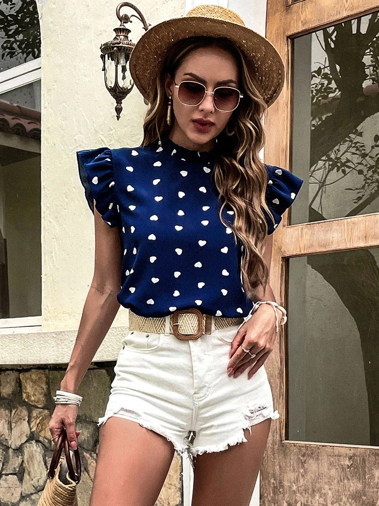 Blouse For Women Dark Navy Chiffon Jewel Neck Casual Buttons Short Sleeves Tops