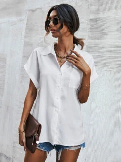 Be the first to review “Blouse For Women White Turndown Collar Casual Short Sleeves Tops” Cancel reply