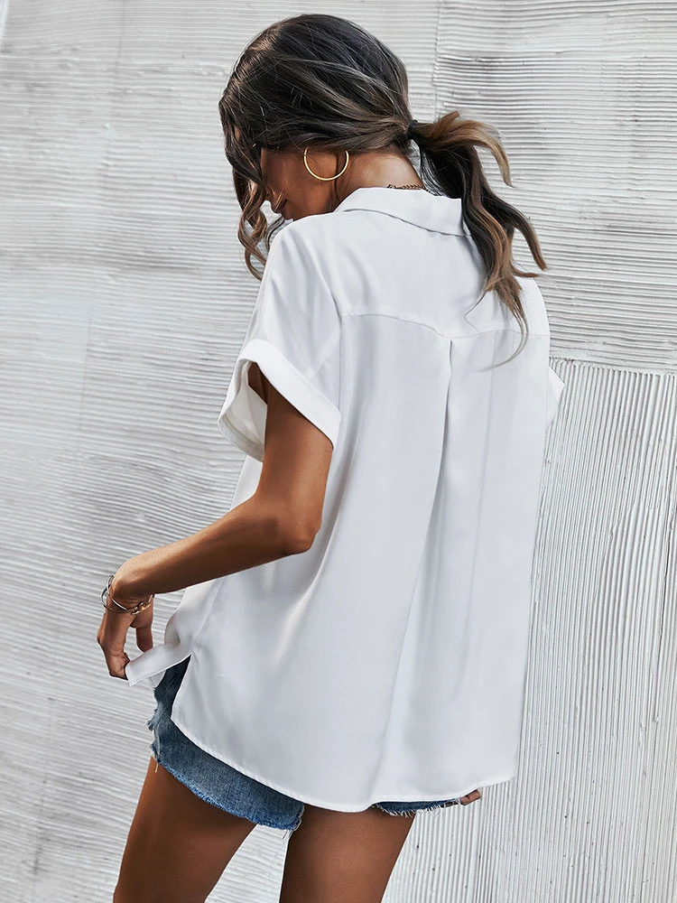 Blouse For Women White Turndown Collar Casual Short Sleeves Tops