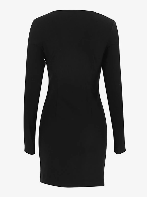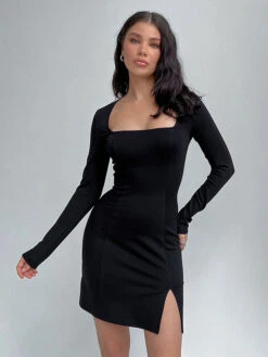 Bodycon Dresses Black Long Sleeves Sexy Square Neck Slim Fit Dress Sheath Dress