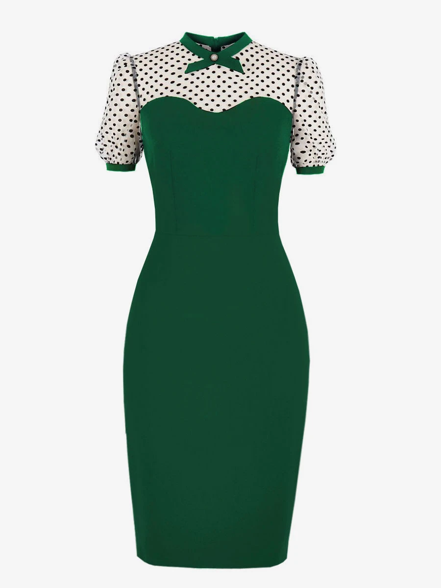 Bodycon Dresses Green Color Block Short Sleeves Sheath Dress