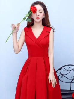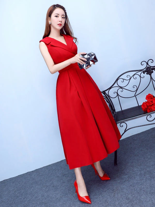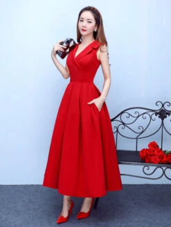 Be the first to review “Burgundy Cocktail Dress Notch Collar Party Dress Satin A Line Tea Length Occasion Dress With Pockets Wedding Guest Dress” Cancel reply