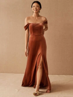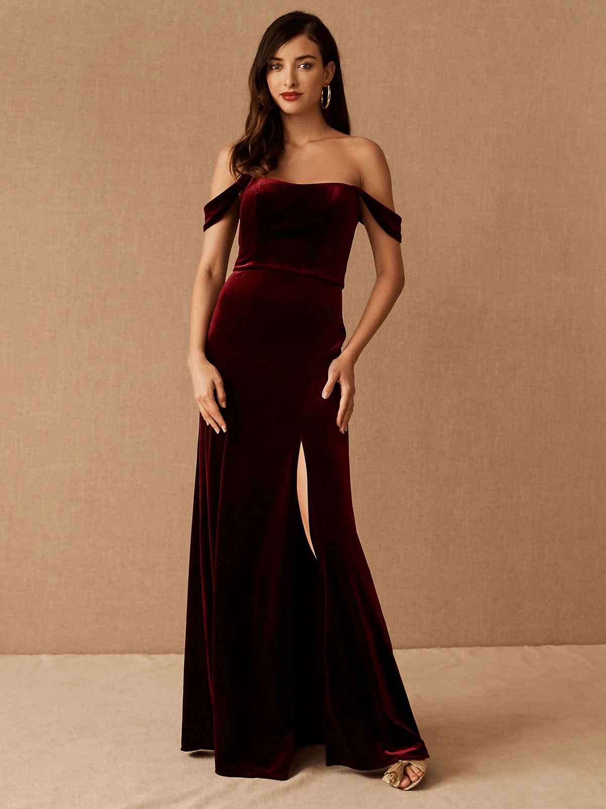 Be the first to review “Burgundy Evening Dress 2023 A-Line Bateau Neck Short Sleeves Zipper Front Velour Split Floor-Length Formal Dresses Wedding Guest Dresses” Cancel reply