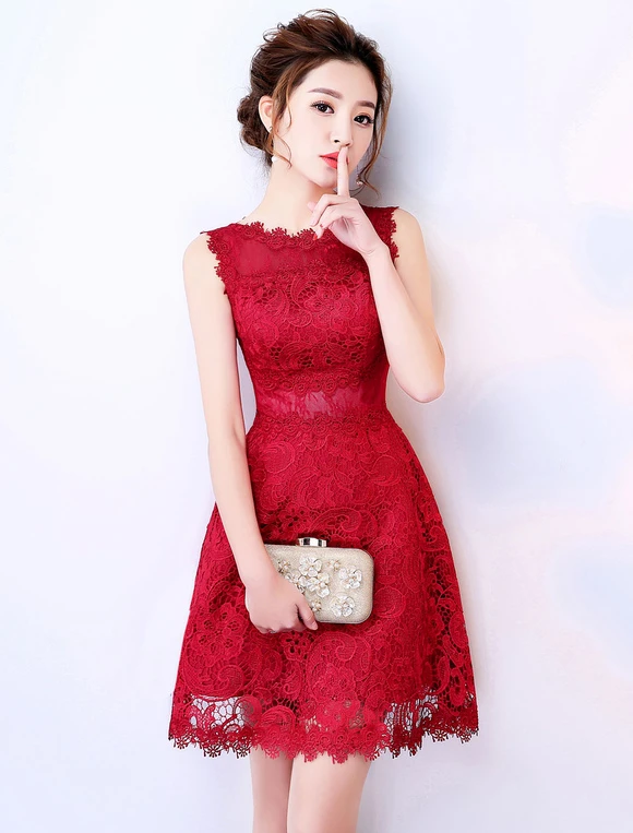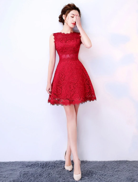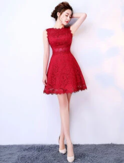 Burgundy Graduation Dresses Lace Short Prom Dress Sleeveless Mini Cute Party Dress