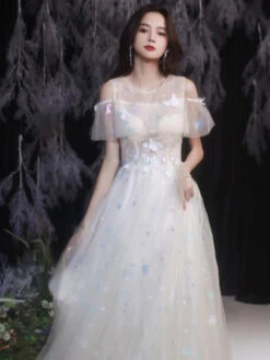 Be the first to review “Champagne Prom Dress 2023 A-Line Jewel Neck Half Sleeves Zipper Butterfly Floor-Length Formal Lace Party Dresses” Cancel reply