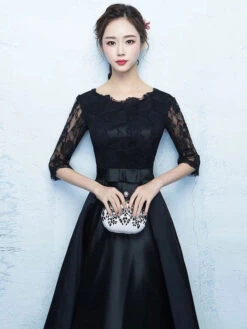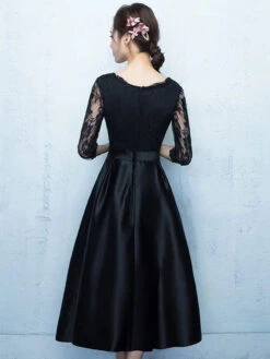 Be the first to review “Cocktail Dresses Black Lace Satin Half Sleeve Bows Graduation Party Dress Free Customization” Cancel reply
