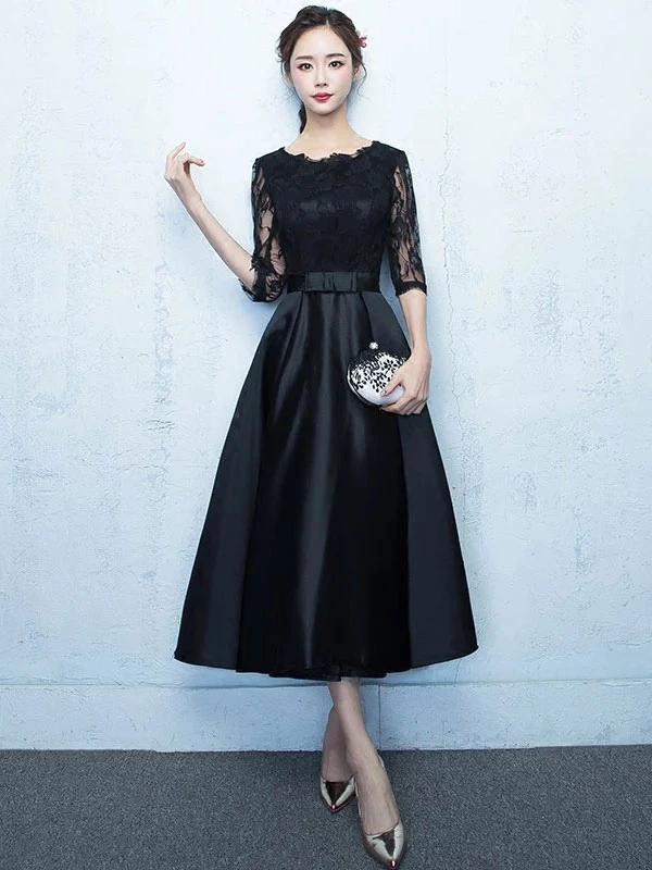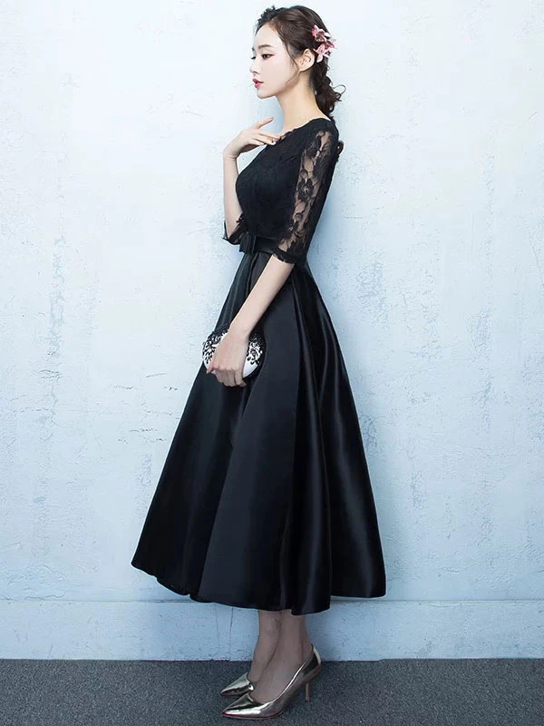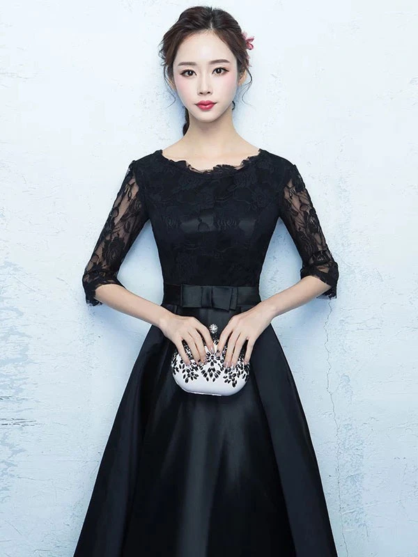 Cocktail Dresses Black Lace Satin Half Sleeve Bows Graduation Party Dress Free Customization