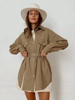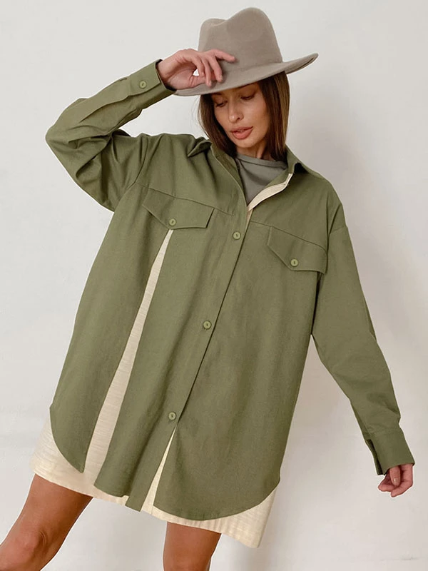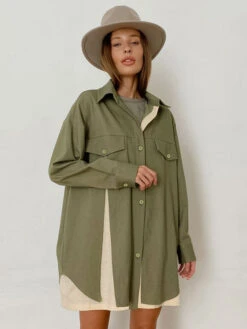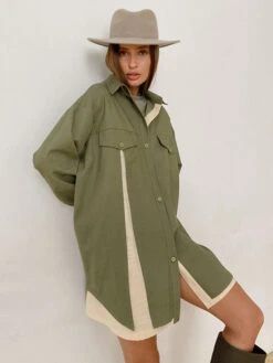 Be the first to review “Dresses Shirt Dresses Midi Dress Green Turndown Collar Long Sleeves Two-Tone” Cancel reply