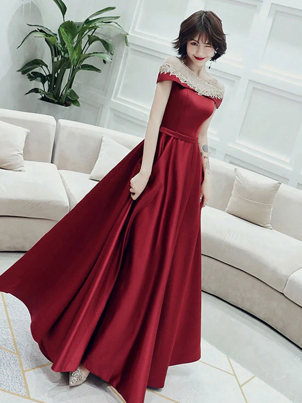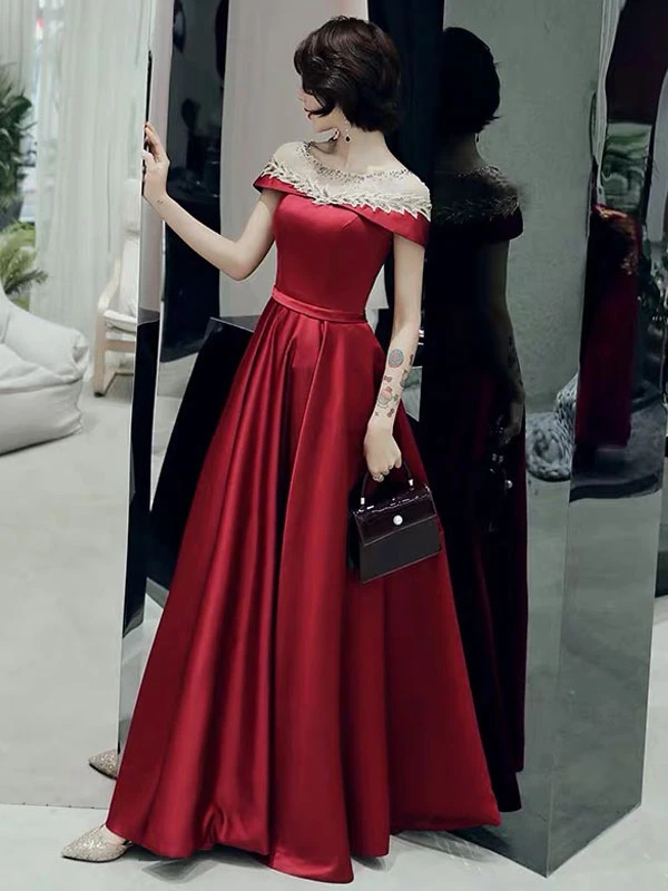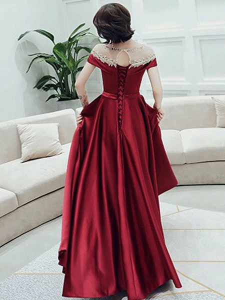 Evening Dress 2023 A Line Jewel Neck Floor Length Short Sleeve Formal Dinner Party Dresses Prom Dress