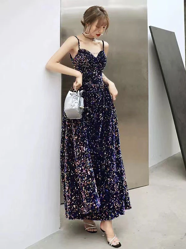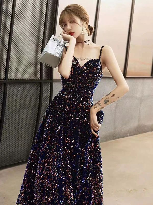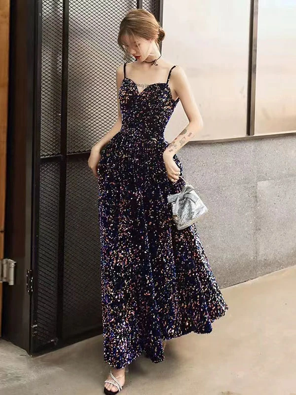 Evening Dress A-Line Sweetheart Neck Floor-Length Sleeveless Lace-Up Sequins Sequined Formal Party Dresses Free Customization