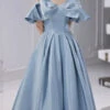 Evening Dress A-Line V-Neck Floor-Length Short Sleeves Lace-up Buttons Satin Fabric Social Party Dresses