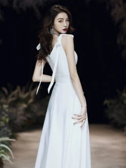 Be the first to review “Evening Dress A-Line V-Neck Floor-Length Sleeveless Zipper Bows Satin Fabric Prom Dress” Cancel reply