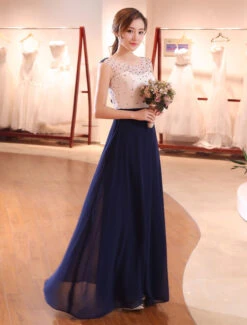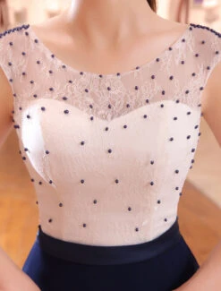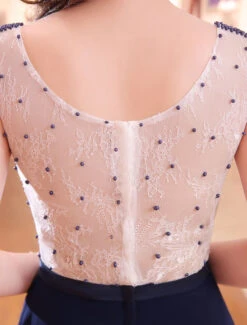 Be the first to review “Evening Dresses Dark Navy Lace Formal Dress Illusion Beaded Contrast Color Floor Length Wedding Guest Dress” Cancel reply
