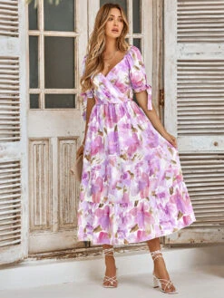 Be the first to review “Floral Dress V-Neck Short Sleeves Casual Printed Midi Dress” Cancel reply