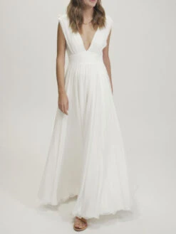 Ivory Simple Causal Wedding Dress Chiffon V-Neck Sleeveless Backless Long A-Line Bridal Dresses Free Customization