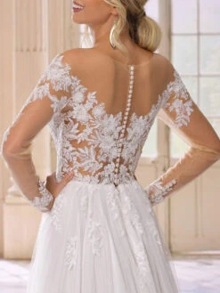 Be the first to review “Ivory Simple Causal Wedding Dress With Train Jewel Neck Long Sleeves High Slit Lace A-Line Bridal Gowns Free Customization” Cancel reply