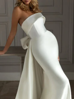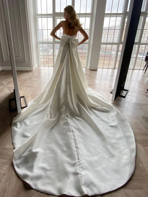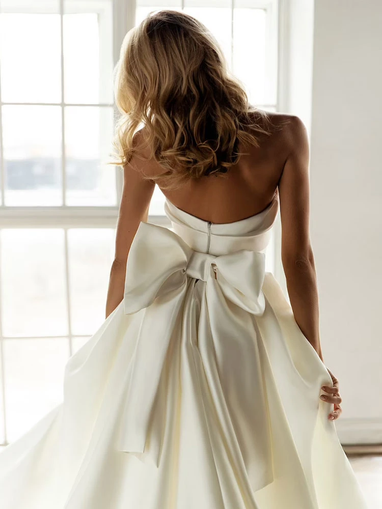 Ivory Simple Mermaid Wedding Dress Satin Fabric Strapless Sleeveless Backless Bows Bridal Gowns Free Customization
