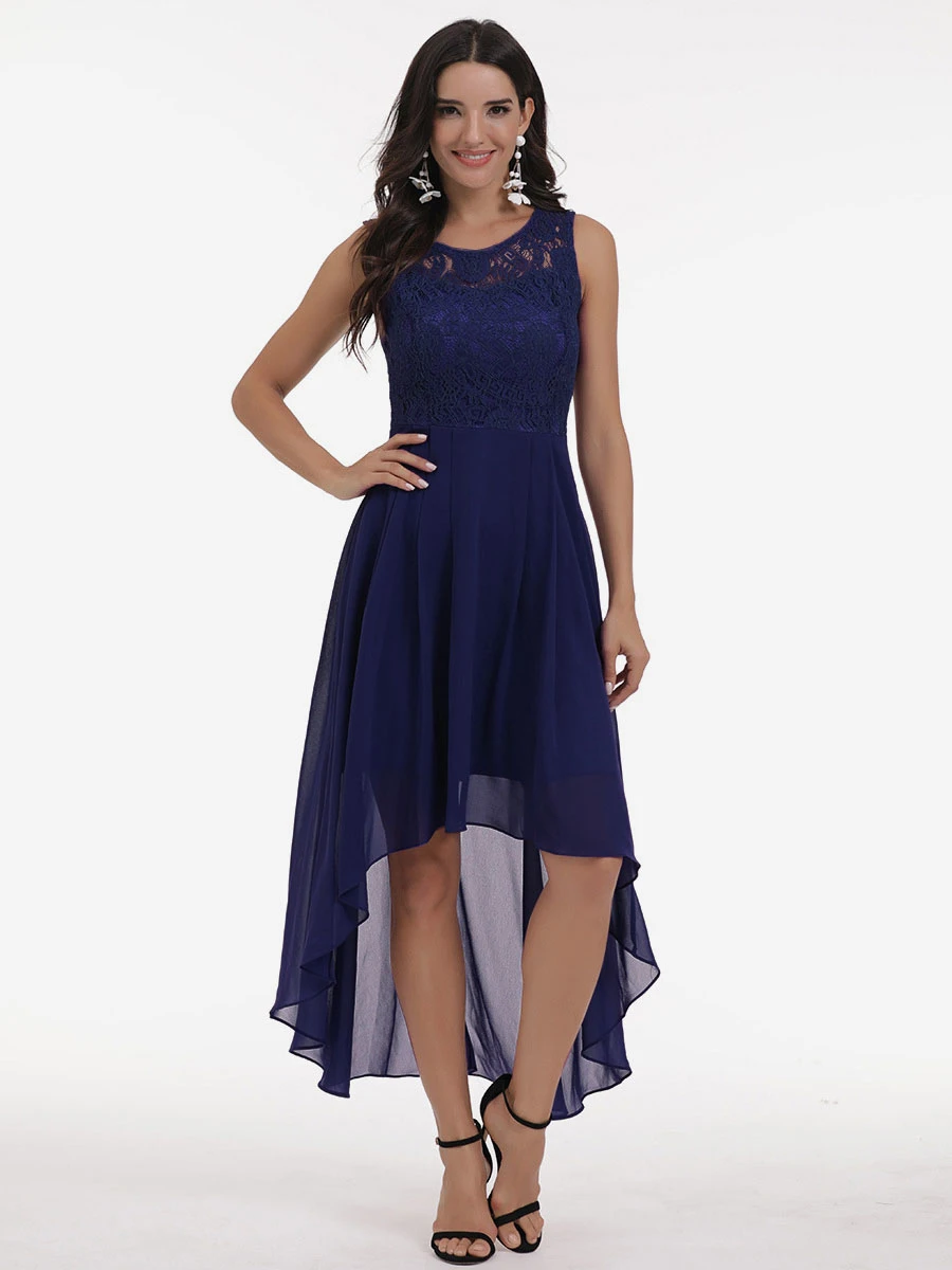 Lace Dresses Dark Navy Jewel Neck Sleeveless Party Dresses