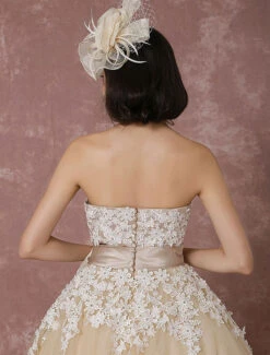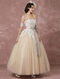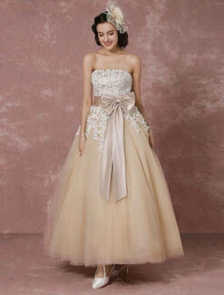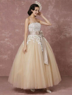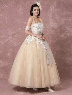 Be the first to review “Lace Wedding Dress Tulle Champagne Bridal Gown With Shrug Cape Ball Gown Strapless Sweetheart Ribbon Bow Sash Ankle Length Bridal Dress Milanoo” Cancel reply