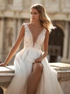 Be the first to review “Lace Wedding Dress With Train A-Line Sleeveless Lace Illusion Neckline Bridal Gowns” Cancel reply