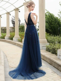 Be the first to review “Long Prom Dress 2023 Dark Navy V Neck Backless Lace Beading A Line Tulle Formal Dresses Wedding Guest Dresses” Cancel reply