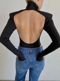 Be the first to review “Long Sleeves Bodysuit Black Backless High Collar Sexy Women Top” Cancel reply
