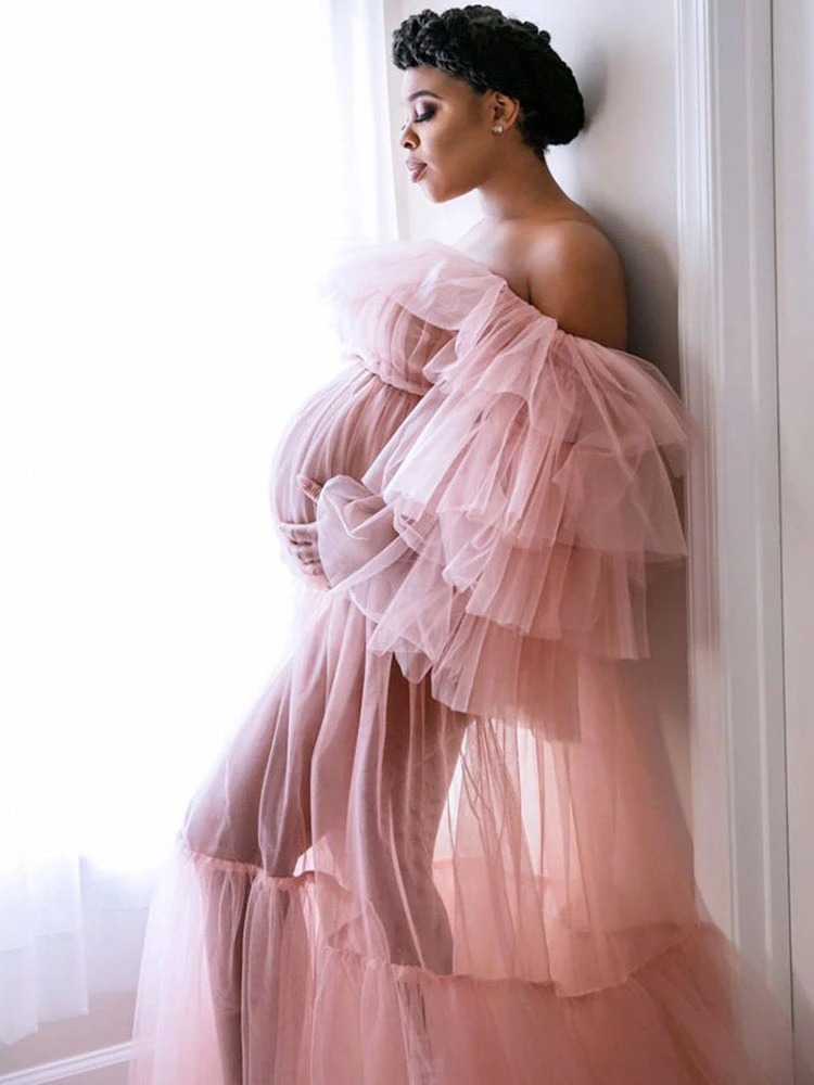 Maternity Wedding Dress Strapless Open Shoulder Lace-Up Tulle Bridal Gowns With Train Free Customization