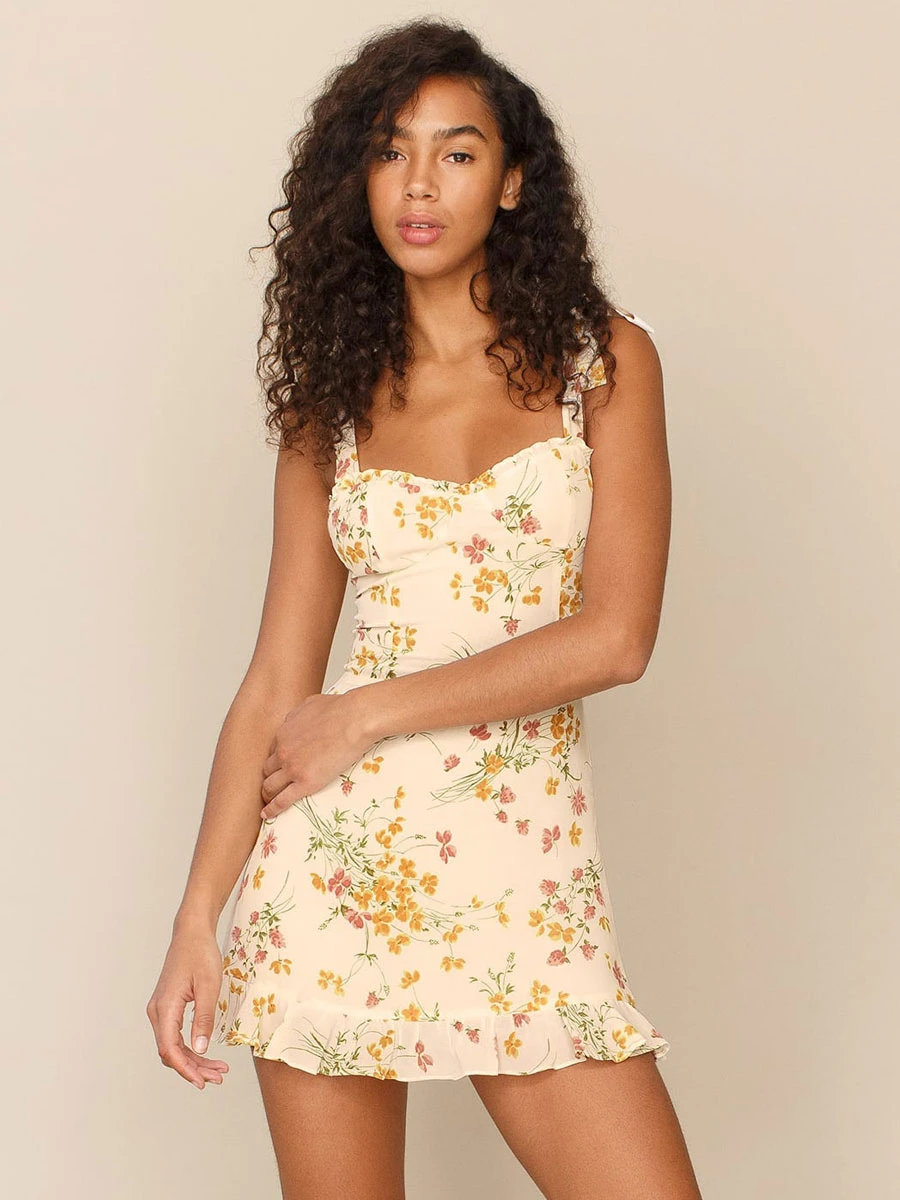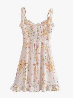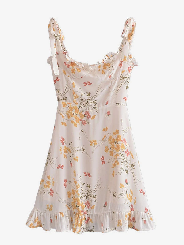 Be the first to review “Mini Dresses Ecru White Floral Print Sleeveless Chiffon Short Dress” Cancel reply