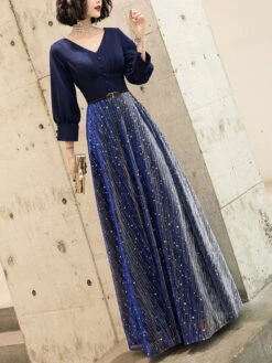 Be the first to review “Navy Blue Prom Dress 2023 Ball Gown V-Neck Stretch Crepe 3/4 Length Sleeves Buttons Wedding Guest Dresses” Cancel reply