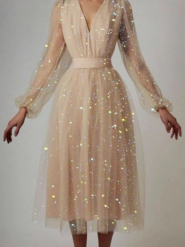| Neckline | V-neck | Fabric | Tulle, Polyester |