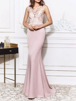 Pink Evening Dress 2023 Jewel Neck Sleeveless Backless Lace Mermaid Formal Dresses Wedding Guest Dresses Free Customization