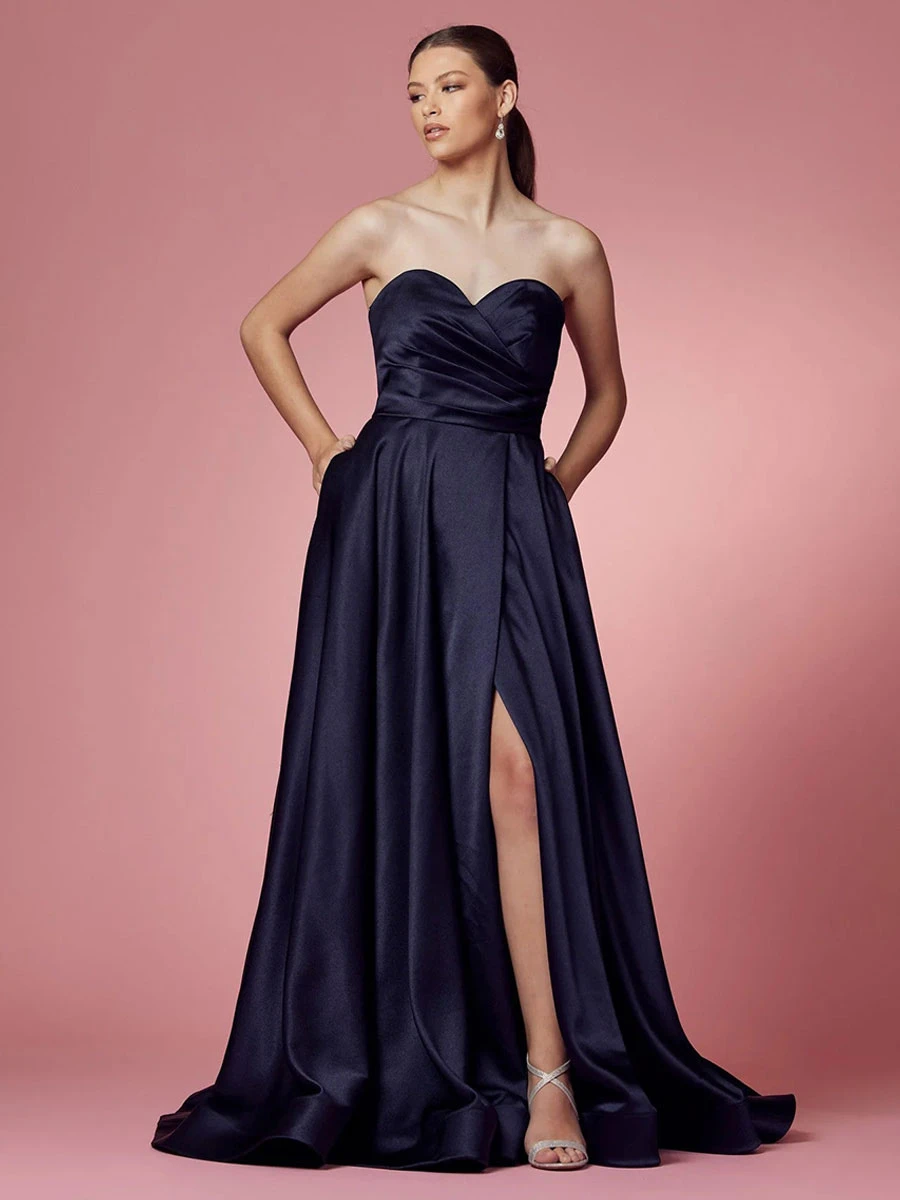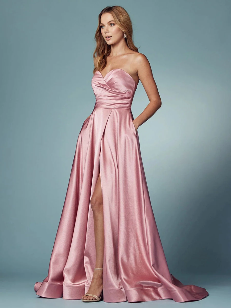 Prom Dress 2023 A-Line Sweetheart Neck Satin Fabric Sleeveless Pockets Party Dresses