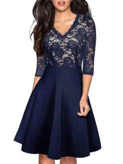 Be the first to review “Prom Dress Black Satin Fabric V-Neck A-Line Short Sleeves Lace Knee Length Party Dresses” Cancel reply