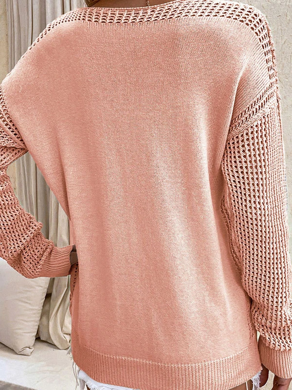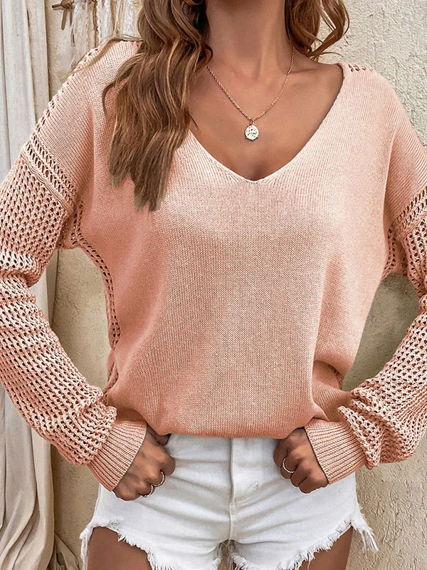 Pullovers For Women Gray V-Neck Long Sleeves Acrylic Sweaters