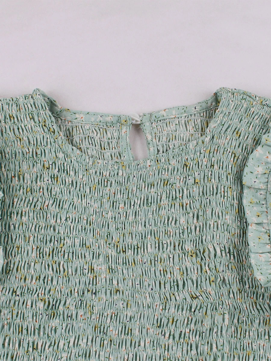 Print Maxi Floral Short Sleeves Bateau Neck Chic Backless Ruffles Backless Long Summer Dress