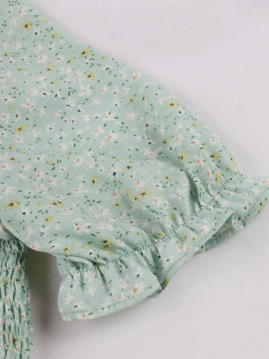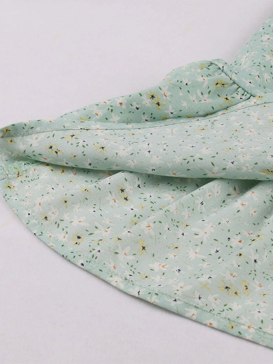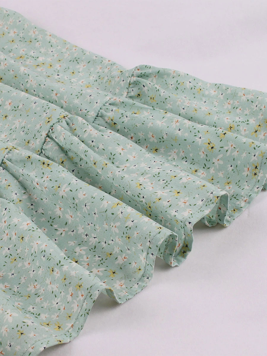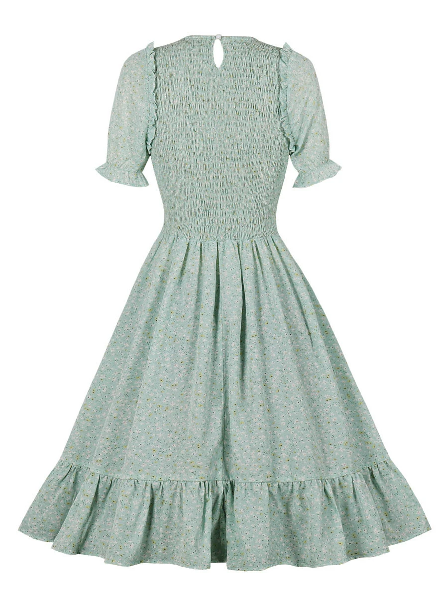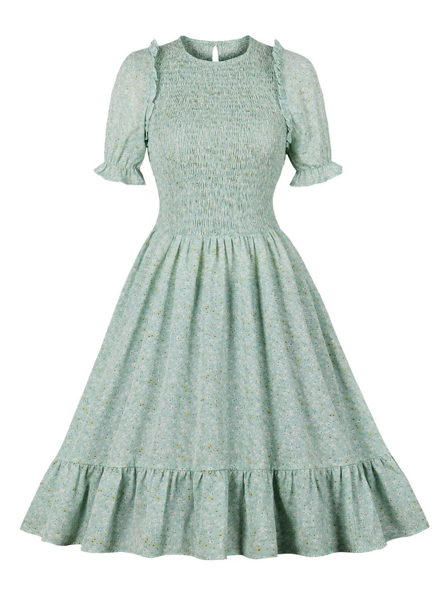 Retro Dress 1950s Audrey Hepburn Style Jewel Neck Short Sleeves Women Knee Length Floral Print Swing Dress