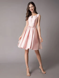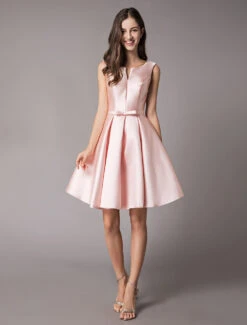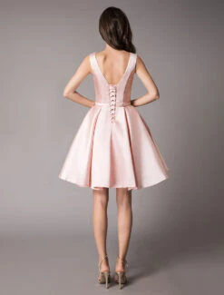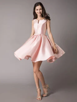 Satin Cocktail Dresses Soft Pink A Line Sleeveless Short Prom Dress