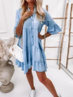 Be the first to review “Shift Dresses Light Sky Blue Turndown Collar Denim Layered Woman Tube Dress” Cancel reply