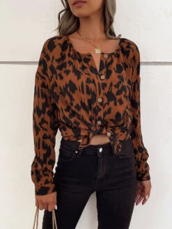 Be the first to review “Shirt For Women Coffee Brown Chiffon V-Neck Bohemian Long Sleeves Tops” Cancel reply