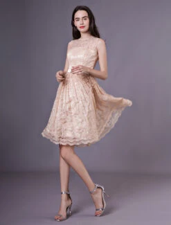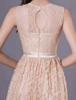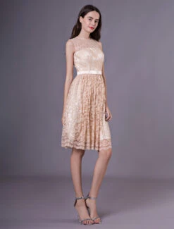 Short Prom Dress Lace Champagne Short Keyhole Cocktail Party Dress